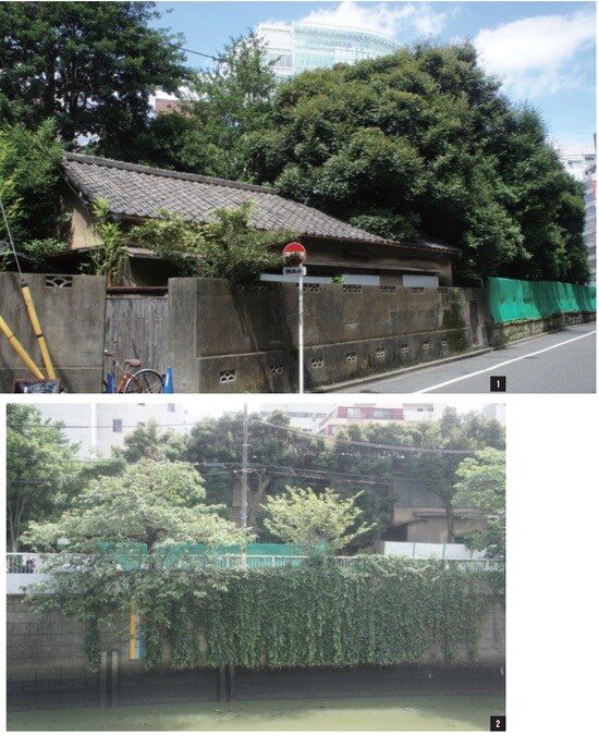 1:裏手に回ると、ここが都会だという事を忘れる光景が。2:旅館からこの目黒川へと抜ける避難トンネルがあると、件のトリさんが語っていたそうだ。