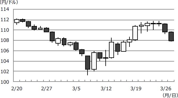 各国の主要株価指数は、ドル円が101円19銭水準をつけた3月9日以降も下げ止まらず、投げ売りのような状態が続いていました。こうしたなか、ドル円の動きに大きな変化が生じました。3月10日以降、それまでのリスクオフの円買いを背景とする「ドル安・円高」の流れは、「ドル高・円安」方向に転じ、ドル円は3月24日、一時111円71銭水準をつけるに至りました。