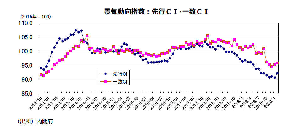 ※当レポートの閲覧に当たっては【ご注意】をご参照ください(見当たらない場合は関連記事『2020年2月分景気動向指数(速報値)』を参照)。
