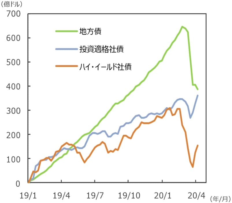 ■世界景気の減速は4-6月も続く見通しですが、各国の金融・財政政策が下支えすると期待されます。米連邦準備制度理事会(FRB)が企業金融を支える政策を大胆に打ち出したことで、投資適格社債、ハイ・イールド社債など社債ファンドへの資金の流れは落ち着きをみせています。一部に新型コロナウイルスの感染鈍化がみられますが、新たに増加している国・地域もあり、収束にはまだ時間がかかると思われます。引き続き、新型コロナウイルスの感染拡大を睨む展開が続くと思われます。