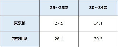厚生労働省が発表している「賃金構造基本統計調査」によると、都内勤務の男性会社員の平均月給は、25~29歳で27.5万円、30~34歳で34.1万円、神奈川県勤務で25~29歳で26.1万円、30~34歳で30.5万円となっています(図表2)。企業規模によって平均給与は異なりますが、そこから住民税や所得税などを差し引いた手取り額の1/3以内を適正家賃と考えると、都内勤務20代後半は6.9万円、神奈川県勤務は6.7万円、都内勤務30代前半は8.5万円、神奈川県勤務は7.6万円となります。