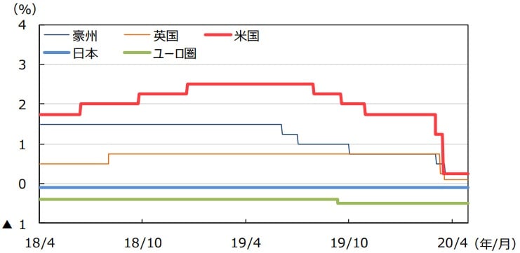 豪州は、新型コロナの感染抑制のための経済封鎖によって4-6⽉期の経済活動が⼤幅に減速すると⾒込まれますが、政府の財政⽀援策や豪州準備銀⾏(RBA)による追加的⾦融政策実施により、感染拡⼤に起因する経済や⾦融の混乱緩和が期待されます。