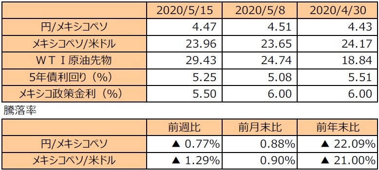 (注2)メキシコペソ/米ドルの騰落率はメキシコペソの対米ドルでの騰落率。