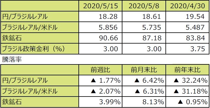 (注4)前週比は2020年5月8日から2020年5月15日まで、前月末比は2020年4月30日から2020年5月15日まで、前年末比は2019年末から2020年5月15日まで。