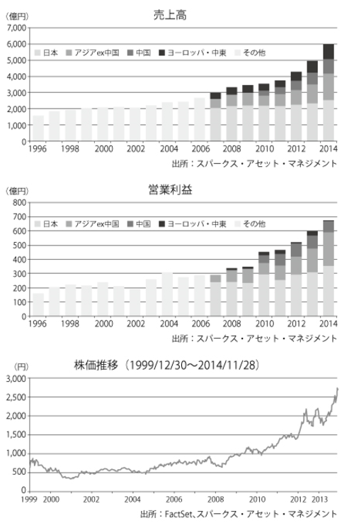 しかし、アジアの巨大な消費市場の成長という大きな長期にわたるトレンドの変化を見極めれば、こうした調整局面が大きな投資機会を生むことになる。株価は2001年末から現在までに約9倍(2014年11月28日時点)になっている。