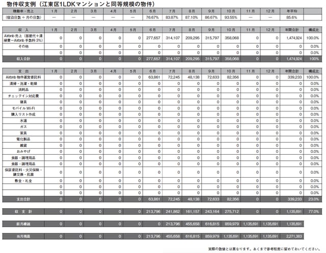 オープンからまだ5ケ月しか経っていませんが、稼働率は最初の月から76%を超え、その後は80%台になり、直前の10月では93.6%と大変な人気物件となっています。収益の面でも、わずか5ケ月で113万を超える勢いです。オーナーは現状に大変満足しており、ほかの8室についてもAirbnbとして運営することを検討しています。