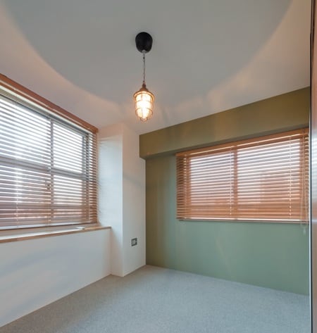 一面にアクセントクロス(配色)を入れるだけでぐっと締まる雰囲気。