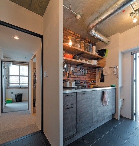ワイドなスペースが厳しいため、Ⅱ列型の造作キッチンを採用。