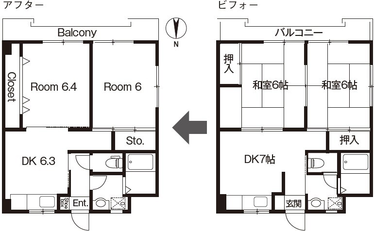 コスト圧縮プランでも、リノベ前後の差は歴然。