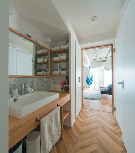 角度を変えて見ると洗面所からLDKにつながる合理性。