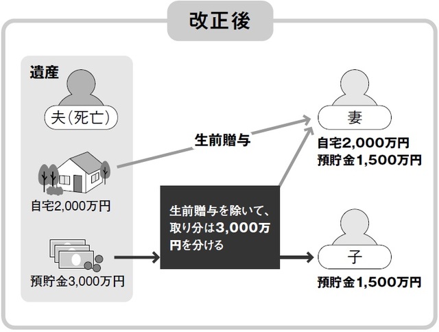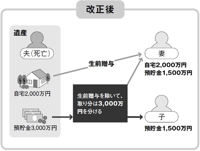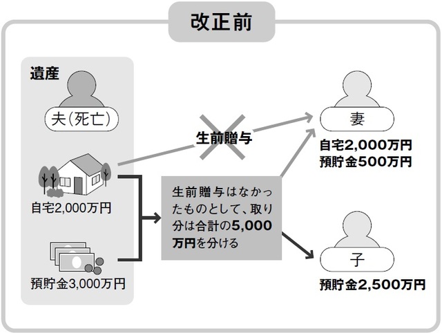 ところが、この制度を使って、たとえば夫が自宅を妻に贈与した場合でも、夫が亡くなったときにはその贈与はなかったものと考えて、相続の取り分を決めなければならないことになっていました。