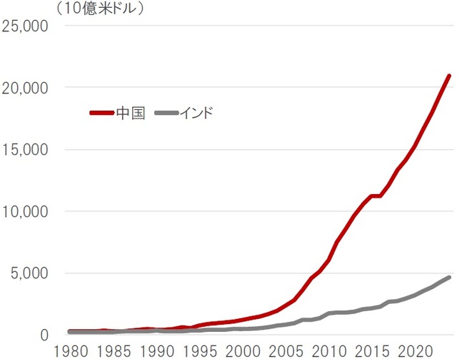 GDPは【1人当りGDP×人口】と表すことができます。新興国の経済成長率が高いのは、人口が増え続けていることに加え、1人当りGDPが低いためにインフラ投資などによる経済効率向上効果が非常に高く、さらに人口増加が経済効率向上にもプラス効果をもたらすことが理由として考えられます。