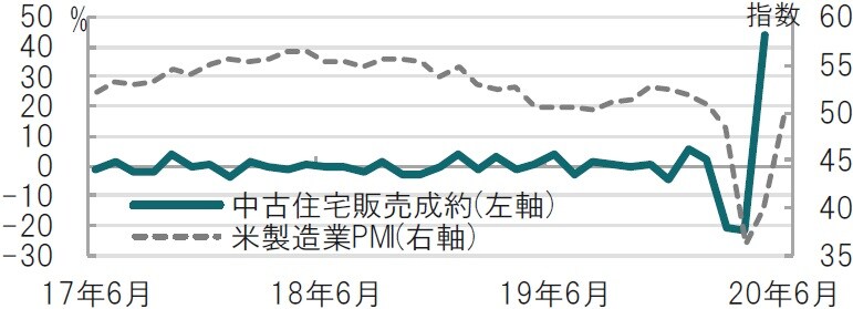 まず、米国住宅市場については、5月の中古住宅販売成約指数で市場予想を上回る大幅な改善が示されました。23日に発表された新築住宅販売件数も67.6万戸と市場予想を上回り堅調でした。これらの指標は共に、販売契約時点で計上されるため、5月に米国で経済活動が再開した動きをある程度反映した改善と見ています。