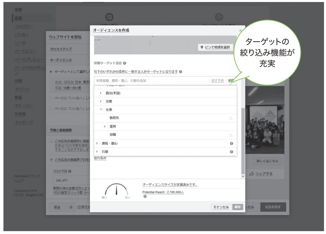 Facebookの広告配信画面