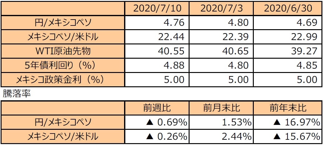 (注2)メキシコペソ/米ドルの騰落率はメキシコペソの対米ドルでの騰落率。