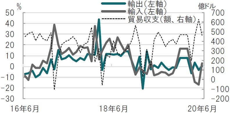 気になる点としては、輸出の改善を下支えする項目を見ると、マスクなど医療関連がけん引するのは、5月と同様です。ただ、2月頃から中国からのマスク等の供給が途絶え、マスク需要が高まりましたが、日本でもマスク不足は解消されつつあり、「特需」への期待は低下すると思われます。