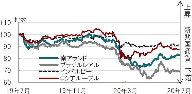 まず、コロナの感染拡大懸念です。南アの新規感染者数は足元で1日1万2千から1万3千人で推移しています(図表1参照)。ブラジルやインドより少ないですが、南アの人口は6千万人弱で、ブラジルの3分の1強に過ぎず影響は懸念されます。また、医療体制も十分とは言い難く、再開された経済活動の制限が景気回復を遅らせる懸念はあります。