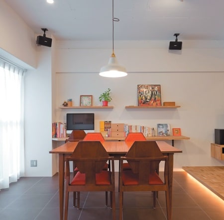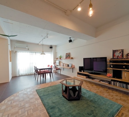 [4]ダイニングの床材に変化をつけて、収まりよく。