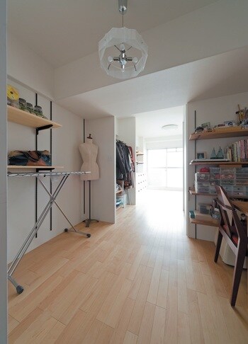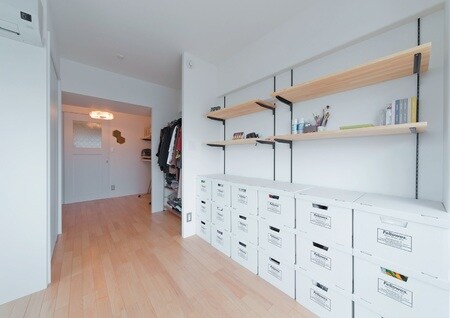 [8]移動式金物棚を採用することで収納量も変えられる。