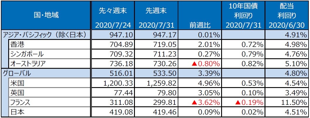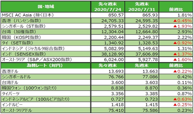 (注4)前週比は2020年7月24日から2020年7月31日まで、前月末比は2020年6月30日から2020年7月31日まで、前年末比は2019年末から2020年7月31日まで。