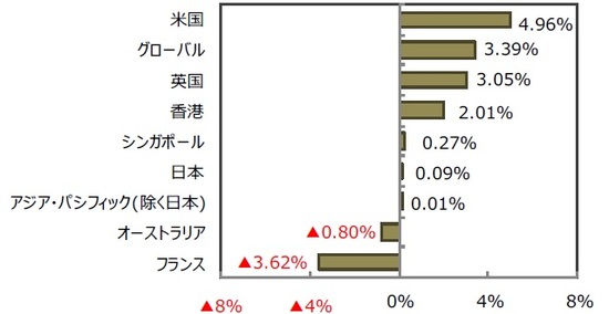 グローバル・リートは欧米での長期金利低下などを好感して3.39%上昇しました。