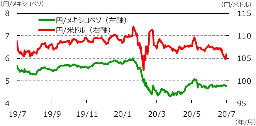 (注2)メキシコペソ/米ドルの騰落率はメキシコペソの対米ドルでの騰落率。