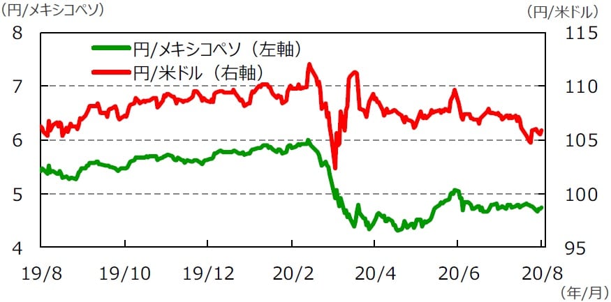 (注2)メキシコペソ/米ドルの騰落率はメキシコペソの対米ドルでの騰落率。