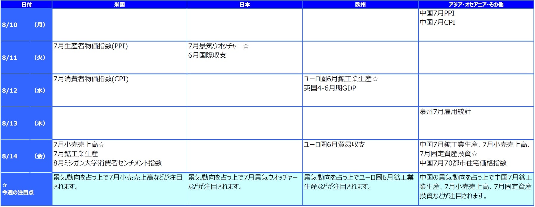 5. 今週の主な注目材料