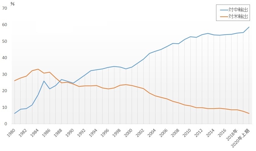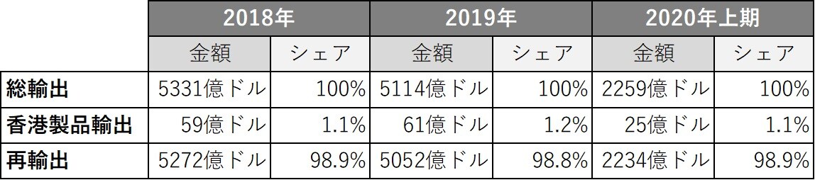 ①そもそも、香港の関税上の独立した地位は米国ではなく、WTOによって認定されたもので、米国の制裁でその地位が失われるわけではない。制裁は一義的には対米貿易のみに影響する。その香港の対米輸出は傾向的に縮小、代わって対本土輸出が増加している(特に1997年の返還以降)。