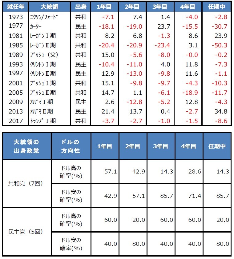 就任1年目はいずれの党もドル高傾向、ただ相場をみる上では、出身政党より政策を重視すべき