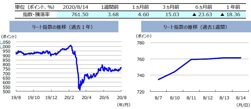 先週の豪州リート指数は、上昇しました。週前半は、ビクトリア州の新型ウイルス感染拡大にピークアウトの兆しが見え始めている点などが好感され、上昇しました。その後は株価の軟調さなどを受けて横ばいの推移に留まりましたが、週間を通しては上昇しました。