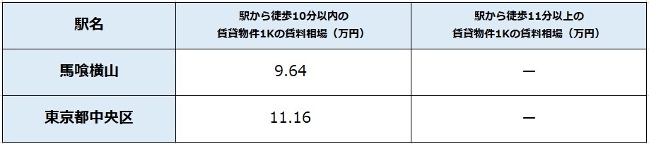 住む街を探す際、最も重要視される家賃ですが、「馬喰横山」駅徒歩10分圏内の1Kの平均家賃は9.64万円。東京都中央区の同条件1Kの平均家賃は11.16万円なので、同区のなかではリーズナブルな家賃水準のエリアだといえます(図表1)。