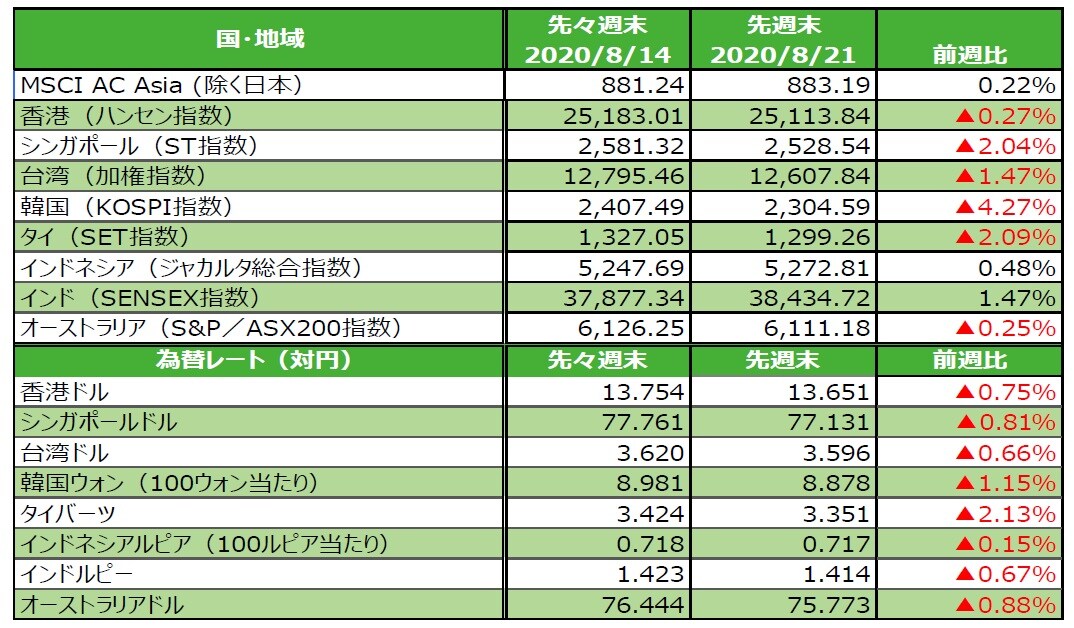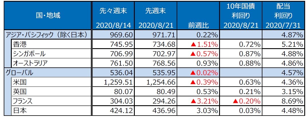 2. 先週のアジア・オセアニア株式・リート市場