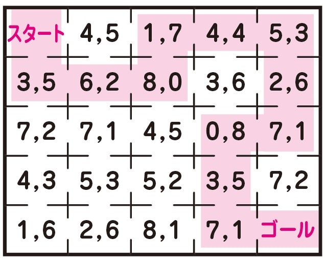 [図表2]マス内の和が「8」になる道を通り、ゴールしよう ※クリックで答えを見る