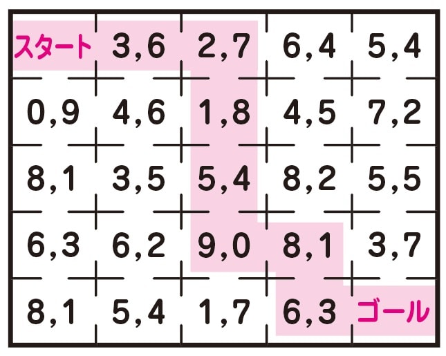 [図表3]マス内の和が「9」になる道を通り、ゴールしよう ※クリックで答えを見る