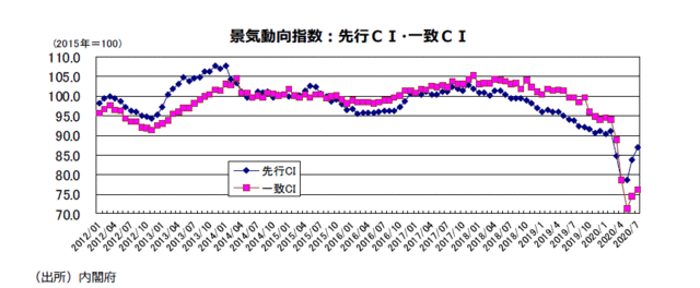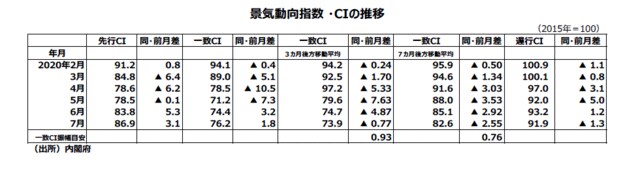 ※当レポートの閲覧に当たっては【ご注意】をご参照ください(見当たらない場合は関連記事『2020年7月分景気動向指数(速報値)』を参照)。
