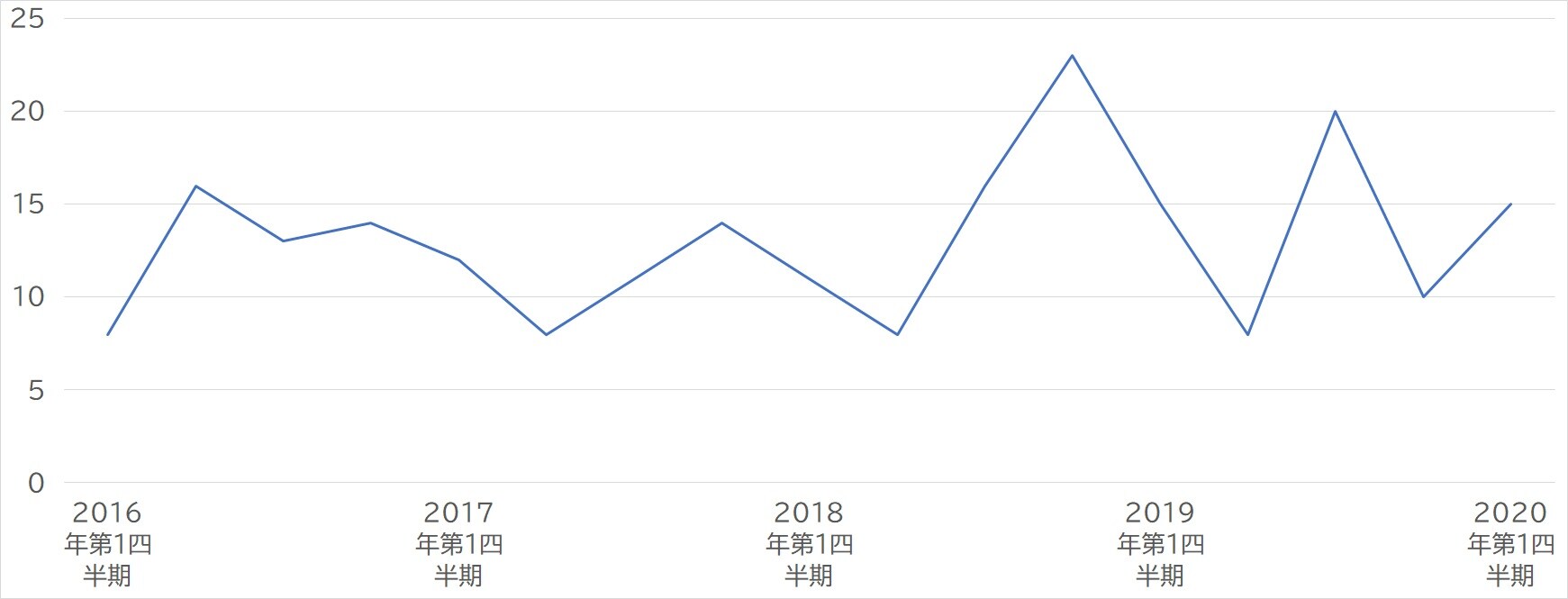 過去5年間の中古マンションの取引件数をみていくと、季節により変動はあるものの平均13件程度の取引きが行われています。またコロナ禍の影響下でも2020年第1四半期は15件と、過去5年の平均値を上回る取引きがされています。いまのところ、コロナ禍の影響をさほど受けていないマーケットだといえそうです(図表7)。