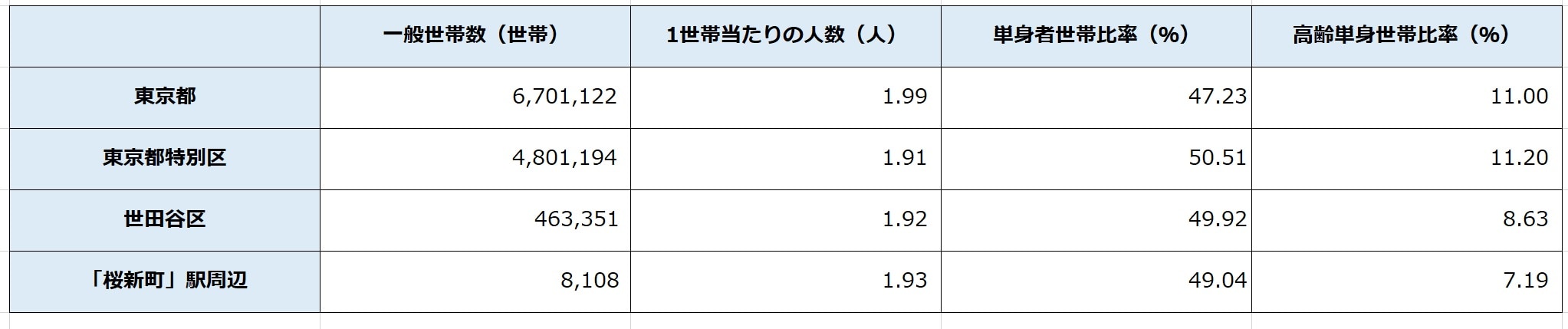 国勢調査を中心に、桜新町エリアの人口構造をみていきます。