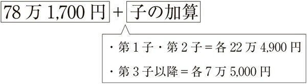 たとえば、遺された家族が配偶者と受給条件を満たす子ども3人だった場合、78万1,700円+(22万4,900円+22万4,900円+7万5,000円)で年額130万6,500円となります。