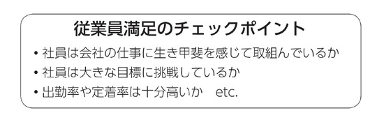 “経営は人なり”といいます。従って従業員満足度が高いことが経営の根本です。社員のモラール(働く意欲)を調査する手法は数多くありますが、「従業員満足のチェックポイント」の図の視点から社員の現状の概容をチェックしてみてください。