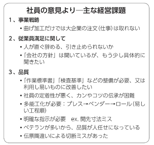業績が好調なだけに何をやったらよいのか改革の課題がなかなか見えてこない。これが社長にとって真の問題点だったのではないかと理解しました。