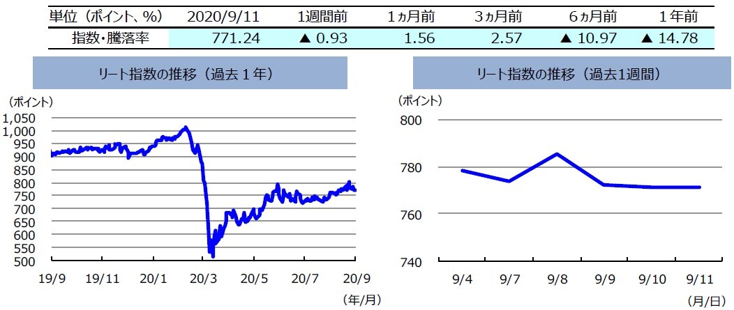 先週の豪州リート指数は、下落しました。新型コロナ感染再拡大が減少傾向であることに加え、金利も低下しましたが、株式市場の下落などを背景に豪州のリート指数は週間を通して下落しました。