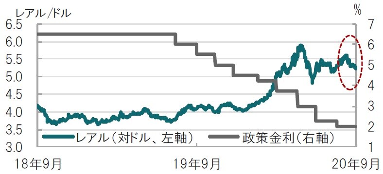ブラジル中央銀行は2020年9月16日、通貨政策委員会で政策金利を市場予想通り2.00%で据え置くことを発表しました(図表1参照)。