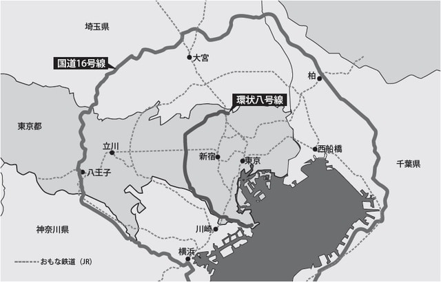 まずは「郊外」の定義です。一口に郊外といってもさまざまですが、筆者がターゲットとして申し上げる「郊外」とは、環状八号線と国道16号線の間を指します(図表1)。