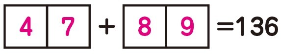 答えが「136」になるよう、□の中に4,7,8,9を入れましょう ※クリックで答えを見る