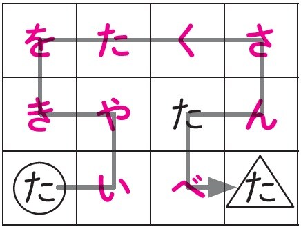 【ルール】 ①〇からはじまって、△でおわる。 ②同じマス目は2回通れない。 ③ななめにはすすめない。 ④ひとふで書きでぜんぶのマス目を通る。