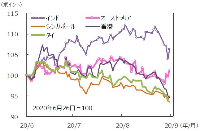 (注4)前週比は2020年9月18日から2020年9月25日まで、前月末比は2020年8月31日から2020年9月25日まで、前年末比は2019年末から2020年9月25日まで。