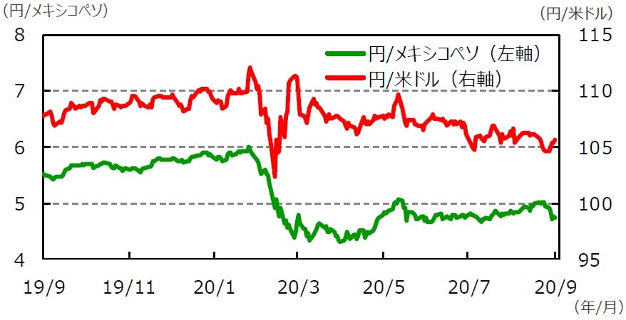 (注2)メキシコペソ/米ドルの騰落率はメキシコペソの対米ドルでの騰落率。