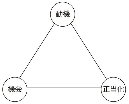 “正当化”とは、不正行為の実行を自身で容認することです。自分勝手な理屈をつけて、自分の心の中で不正行為を肯定してしまう。