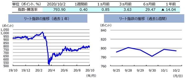 先週の豪州リート指数は、多少上昇しました。豪州国債利回りが上昇し、豪州株式は下落しましたが、米国の追加経済対策を期待しグローバルリート指数が大幅に上昇したことや、豪州においてロックダウン(都市封鎖)が緩和されたことなどから、豪州リート指数は多少上昇しました。